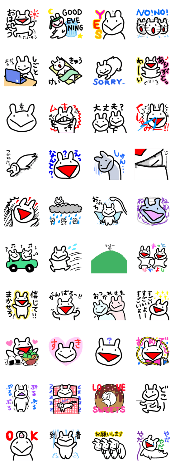 たなうさ つるかめ コメントをどうぞ 10年くらいノートのすみっこに描かれていたキャラ。日常的に使えそうなものを作りました。 このスタンプどう思う?!↓クリックで投票♪好き (0)かわいい (0)かっこいい (0)おもしろい (0)使いやすそう (0)欲しい (0)萌え (0)ほっこりする (0)おしゃれ (0)ゆるい (0)こわい (0)ウザい (0)キモい (0)ムカつく (0)持ってる (0)癒される (0)セクシー (0)個性的 (0)私は買わない (0)誰かプレゼントして! (0) 購入・プレゼントする Facebookでシェア Twitterでシェア