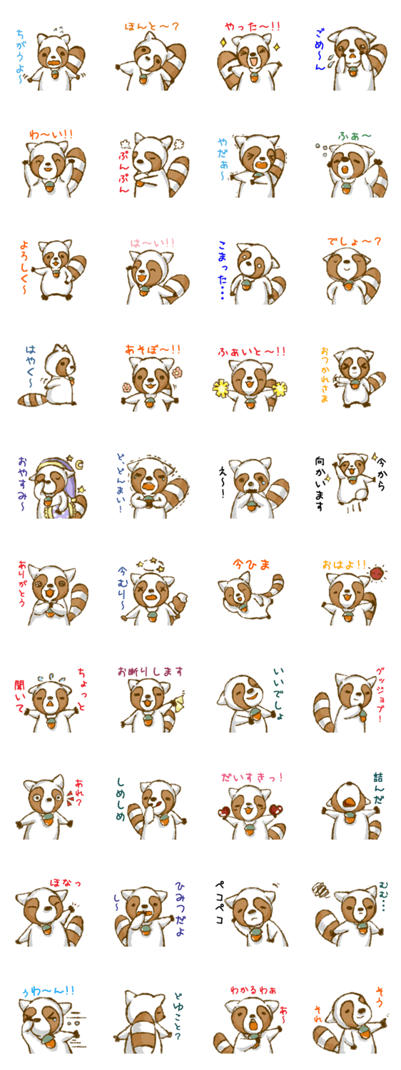 たぬきじゃないよ。 cTa コメントをどうぞ たぬきみたいなレッサーパンダのスタンプです。日常会話で役立ちそうなセリフを中心にお届けします。 このスタンプどう思う?!↓クリックで投票♪好き (0)かわいい (0)かっこいい (0)おもしろい (0)使いやすそう (0)欲しい (0)萌え (0)ほっこりする (0)おしゃれ (0)ゆるい (0)こわい (0)ウザい (0)キモい (0)ムカつく (0)持ってる (0)癒される (0)セクシー (0)個性的 (0)私は買わない (0)誰かプレゼントして! (0) 購入・プレゼントする Facebookでシェア Twitterでシェア