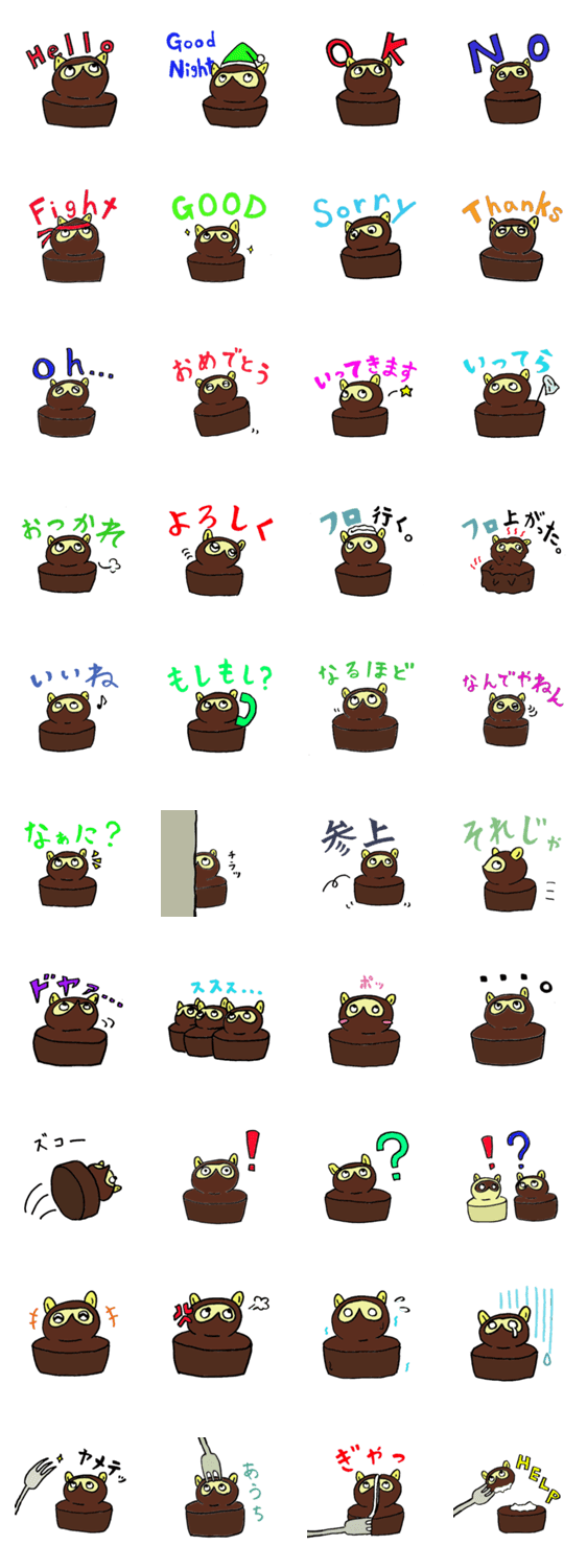 たぬきケーキ ジョバンニ コメントをどうぞ ごく一部のケーキ屋さんに生存しているたぬきケーキのスタンプです。マヌケな顔をしているようだけど可愛くて色んな場面で使えるよ。お店で見かけたら是非食べてみてね。 このスタンプどう思う?!↓クリックで投票♪好き (0)かわいい (0)かっこいい (0)おもしろい (0)使いやすそう (0)欲しい (0)萌え (0)ほっこりする (0)おしゃれ (0)ゆるい (0)こわい (0)ウザい (0)キモい (0)ムカつく (0)持ってる (0)癒される (0)セクシー (0)個性的 (0)私は買わない (0)誰かプレゼントして! (0) 購入・プレゼントする Facebookでシェア Twitterでシェア