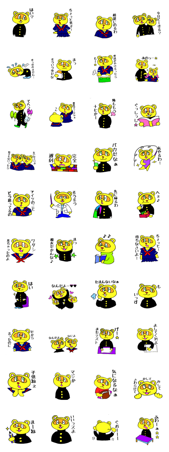 たぬき学園 999 MerccuryMiwa コメントをどうぞ おちゃめなたぬ男くんとしっかり者のたぬ子さんとその他愉快な仲間たちが繰り広げるたぬき学園コメディ♪ このスタンプどう思う?!↓クリックで投票♪好き (0)かわいい (0)かっこいい (0)おもしろい (0)使いやすそう (0)欲しい (0)萌え (0)ほっこりする (0)おしゃれ (0)ゆるい (0)こわい (0)ウザい (0)キモい (0)ムカつく (0)持ってる (0)癒される (0)セクシー (0)個性的 (0)私は買わない (0)誰かプレゼントして! (0) 購入・プレゼントする Facebookでシェア Twitterでシェア