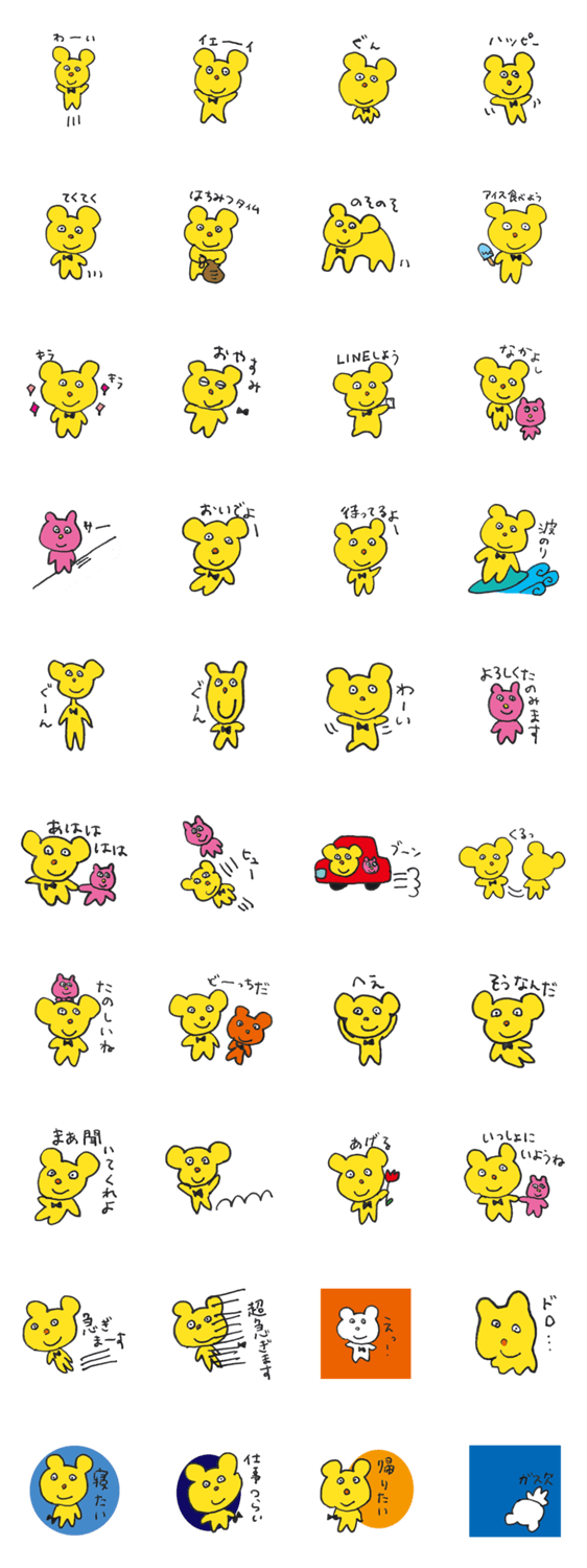 たのしいっぽいくまたち かじぱん コメントをどうぞ たのしそうなくまとおともだち。ときたま本音もぽろり。フリーズしてても大丈夫。単純に楽しいとき、ストレスがたまったときは何も考えず、とりあえずこれをスタンプ。 このスタンプどう思う?!↓クリックで投票♪好き (0)かわいい (0)かっこいい (0)おもしろい (0)使いやすそう (0)欲しい (0)萌え (0)ほっこりする (0)おしゃれ (0)ゆるい (0)こわい (0)ウザい (0)キモい (0)ムカつく (0)持ってる (0)癒される (0)セクシー (0)個性的 (0)私は買わない (0)誰かプレゼントして! (0) 購入・プレゼントする Facebookでシェア Twitterでシェア