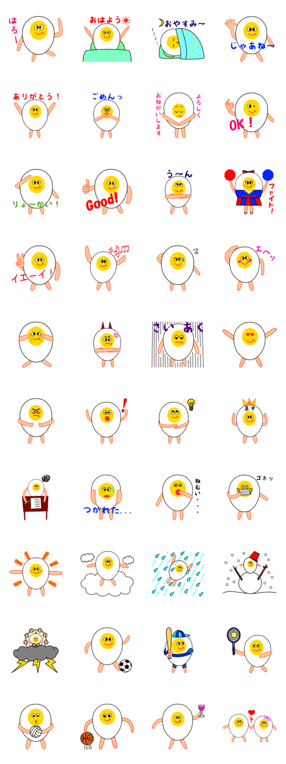 たまごワールド がくめい コメントをどうぞ 小学生の男の子が考えたたまごの世界です。標準的なあいさつものから「怒ったまご」「困ったまご」「照れたまご」「ひらめいたまご」や、天気・スポーツ・デートものまで。 このスタンプどう思う?!↓クリックで投票♪好き (0)かわいい (0)かっこいい (0)おもしろい (0)使いやすそう (0)欲しい (0)萌え (0)ほっこりする (0)おしゃれ (0)ゆるい (0)こわい (0)ウザい (0)キモい (0)ムカつく (0)持ってる (0)癒される (0)セクシー (0)個性的 (0)私は買わない (0)誰かプレゼントして! (0) 購入・プレゼントする Facebookでシェア Twitterでシェア