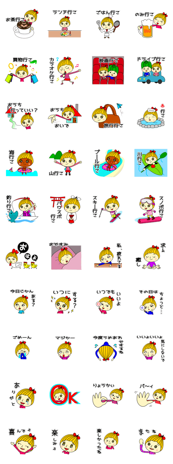 たまねぎリボンちゃんの休日 mihaco コメントをどうぞ お出かけが大好きなたまねぎリボンちゃん。夏休みや冬休みなどの休日のお誘いをします。返事も多数あるので、会話のお供にしてください♪ このスタンプどう思う?!↓クリックで投票♪好き (0)かわいい (0)かっこいい (0)おもしろい (0)使いやすそう (0)欲しい (0)萌え (0)ほっこりする (0)おしゃれ (0)ゆるい (0)こわい (0)ウザい (0)キモい (0)ムカつく (0)持ってる (0)癒される (0)セクシー (0)個性的 (0)私は買わない (0)誰かプレゼントして! (0) 購入・プレゼントする Facebookでシェア Twitterでシェア