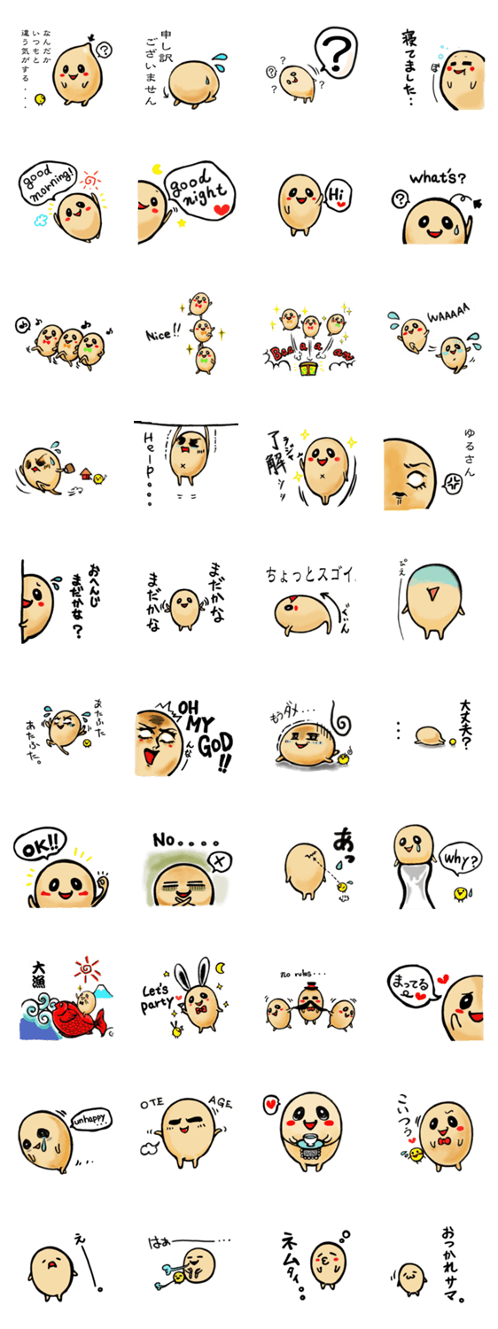 たま太郎 part3 北浦ユキエ コメントをどうぞ たまごなのかたまごじゃないのか軟体か硬体か、はたまた卵の妖精か王子か。いろいろ謎だらけのたま太郎です。喜怒哀楽いっぱい。可愛がってあげてくださいね。 このスタンプどう思う?!↓クリックで投票♪好き (0)かわいい (0)かっこいい (0)おもしろい (0)使いやすそう (0)欲しい (0)萌え (0)ほっこりする (0)おしゃれ (0)ゆるい (0)こわい (0)ウザい (0)キモい (0)ムカつく (0)持ってる (0)癒される (0)セクシー (0)個性的 (0)私は買わない (0)誰かプレゼントして! (0) 購入・プレゼントする Facebookでシェア Twitterでシェア