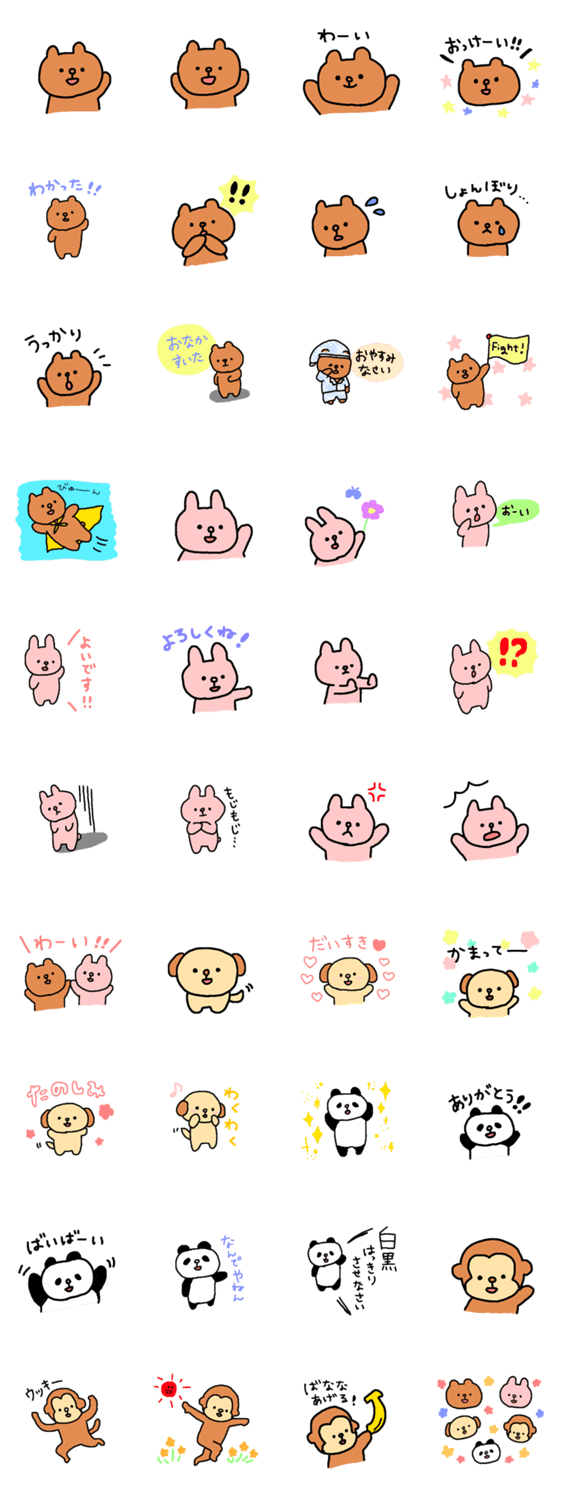 たもきゃらーず あいおくで(あいたもーれ) コメントをどうぞ あいたもーれが作った【たもきゃらーず】です。たもくま、たもうさ、たもいぬ、たもぱんだ、たもさる、たくさんの仲間がいます。ゆるゆるっと使ってもらえたら嬉しいです! このスタンプどう思う?!↓クリックで投票♪好き (0)かわいい (0)かっこいい (0)おもしろい (0)使いやすそう (0)欲しい (0)萌え (0)ほっこりする (0)おしゃれ (0)ゆるい (0)こわい (0)ウザい (0)キモい (0)ムカつく (0)持ってる (0)癒される (0)セクシー (0)個性的 (0)私は買わない (0)誰かプレゼントして! (0) 購入・プレゼントする Facebookでシェア Twitterでシェア