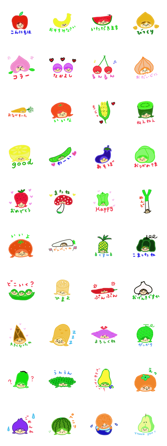 たれまゆすずちゃん 野菜&果物バージョン mana コメントをどうぞ たれまゆすずちゃんが野菜と果物になって登場しました♪ このスタンプどう思う?!↓クリックで投票♪好き (0)かわいい (0)かっこいい (0)おもしろい (0)使いやすそう (0)欲しい (0)萌え (0)ほっこりする (0)おしゃれ (0)ゆるい (0)こわい (0)ウザい (0)キモい (0)ムカつく (0)持ってる (0)癒される (0)セクシー (0)個性的 (0)私は買わない (0)誰かプレゼントして! (0) 購入・プレゼントする Facebookでシェア Twitterでシェア
