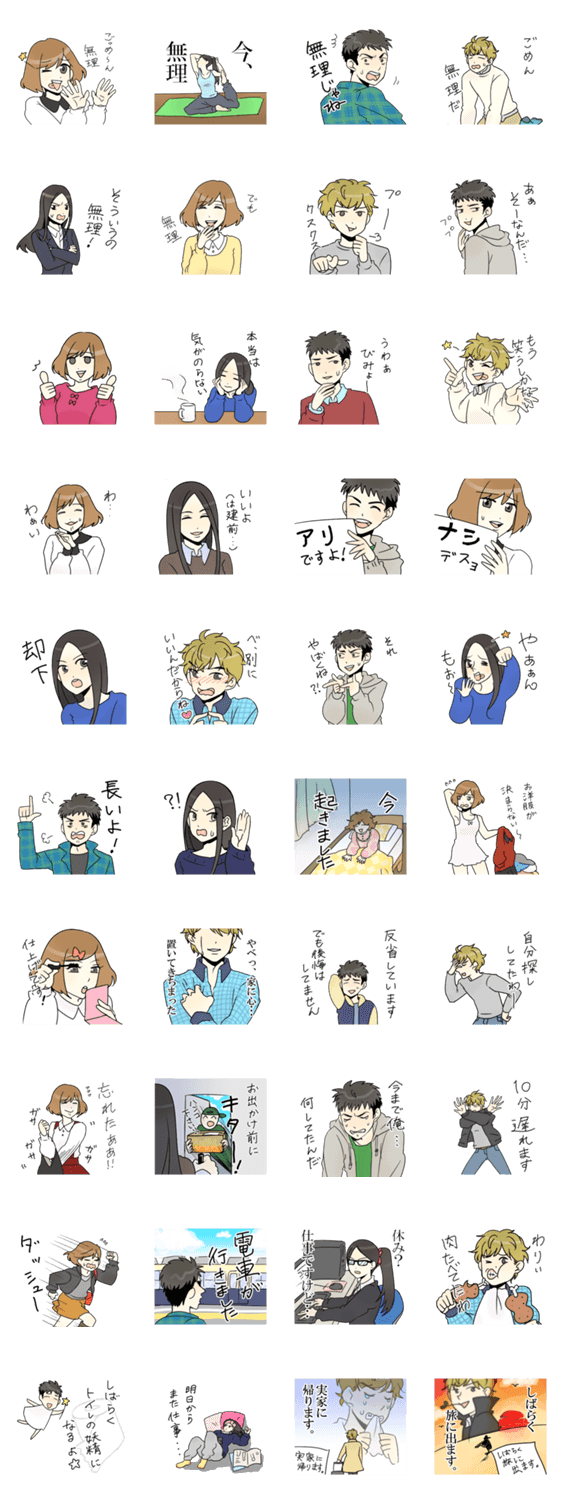 だいたい無理だけど適度に言い訳する感じ ににだ コメントをどうぞ 面倒なお誘い、お願いに受け答え。待ち合わせに遅れるときに使う言い訳、よくわからないけどそう言う心境を悟って欲しい時に使ってください。 このスタンプどう思う?!↓クリックで投票♪好き (0)かわいい (0)かっこいい (0)おもしろい (0)使いやすそう (0)欲しい (0)萌え (0)ほっこりする (0)おしゃれ (0)ゆるい (0)こわい (0)ウザい (0)キモい (0)ムカつく (0)持ってる (0)癒される (0)セクシー (0)個性的 (0)私は買わない (0)誰かプレゼントして! (0) 購入・プレゼントする Facebookでシェア Twitterでシェア