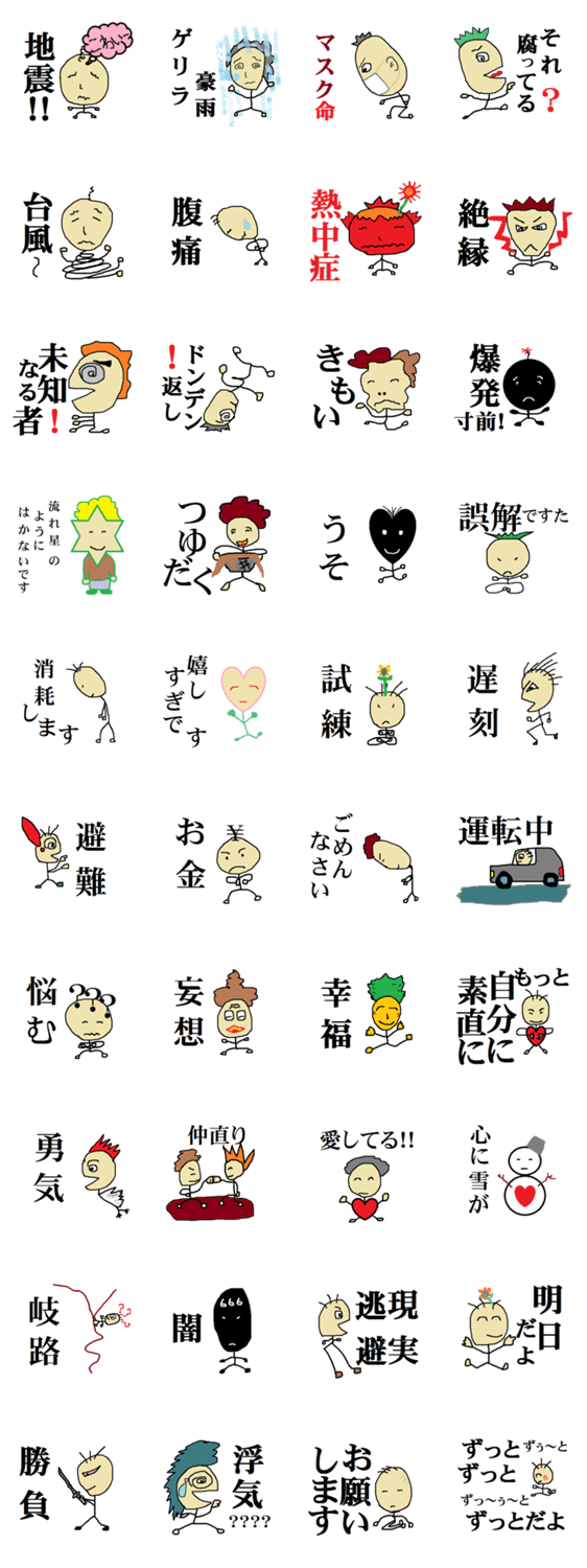 だって、人間なんだもの AZ666 コメントをどうぞ 相手に、なかなか言い出せない言葉があります。そんなとき、スタンプが自分の心を代わりに伝えてくれたら。そんな想いから、生まれたスタンプです。 このスタンプどう思う?!↓クリックで投票♪好き (0)かわいい (0)かっこいい (0)おもしろい (0)使いやすそう (0)欲しい (0)萌え (0)ほっこりする (0)おしゃれ (0)ゆるい (0)こわい (0)ウザい (0)キモい (0)ムカつく (0)持ってる (0)癒される (0)セクシー (0)個性的 (0)私は買わない (0)誰かプレゼントして! (0) 購入・プレゼントする Facebookでシェア Twitterでシェア