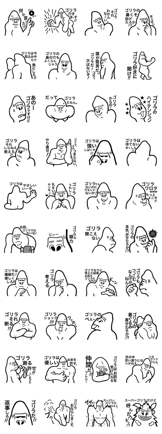 だってゴリラだもん。 マーク ジャパード コメントをどうぞ ゴリラでいっぱいのスタンプです。 このスタンプどう思う?!↓クリックで投票♪好き (0)かわいい (0)かっこいい (0)おもしろい (0)使いやすそう (0)欲しい (0)萌え (0)ほっこりする (0)おしゃれ (0)ゆるい (0)こわい (0)ウザい (0)キモい (0)ムカつく (0)持ってる (0)癒される (0)セクシー (0)個性的 (0)私は買わない (0)誰かプレゼントして! (0) 購入・プレゼントする Facebookでシェア Twitterでシェア