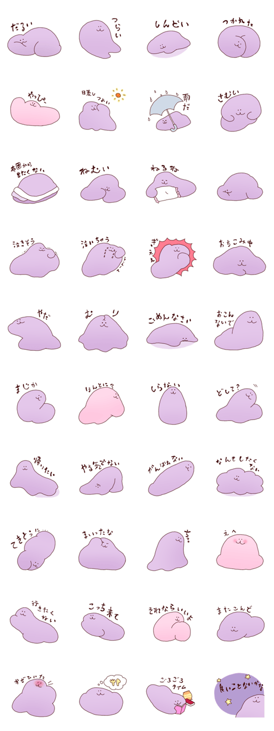 だるいスタンプ おはな コメントをどうぞ ちょっぴりネガティブななぞの生き物「だるいちゃん」の実用性の高いスタンプです。気分が良いときはピンク色に変化。かわいくわがままを言ってみてはいかがでしょうか。 このスタンプどう思う?!↓クリックで投票♪好き (0)かわいい (0)かっこいい (0)おもしろい (0)使いやすそう (0)欲しい (0)萌え (0)ほっこりする (0)おしゃれ (0)ゆるい (0)こわい (0)ウザい (0)キモい (0)ムカつく (0)持ってる (0)癒される (0)セクシー (0)個性的 (0)私は買わない (0)誰かプレゼントして! (0) 購入・プレゼントする Facebookでシェア Twitterでシェア