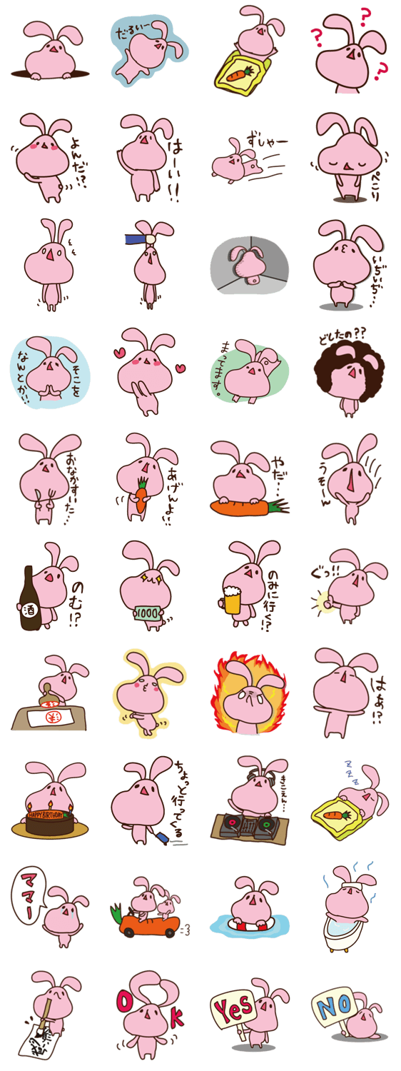 だるうさ☆ しぃ☆ コメントをどうぞ 毎日だるだるーっと生きているうさぎの【だるうさ】のスタンプです。にんじん、実はきらい…。でも、ほらうさぎだし?にんじん食べるしかないよねー…。 このスタンプどう思う?!↓クリックで投票♪好き (0)かわいい (0)かっこいい (0)おもしろい (0)使いやすそう (0)欲しい (0)萌え (0)ほっこりする (0)おしゃれ (0)ゆるい (0)こわい (0)ウザい (0)キモい (0)ムカつく (0)持ってる (0)癒される (0)セクシー (0)個性的 (0)私は買わない (0)誰かプレゼントして! (0) 購入・プレゼントする Facebookでシェア Twitterでシェア