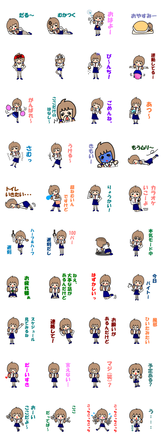 だるだるJK yukamaria コメントをどうぞ パンダ目のJKちゃんがだるだるな感じでスタンプになりました。一昔前を思わせるJKちゃんですが、本人にとってはどうでもいい、みたいですよ。 このスタンプどう思う?!↓クリックで投票♪好き (0)かわいい (0)かっこいい (0)おもしろい (0)使いやすそう (0)欲しい (0)萌え (0)ほっこりする (0)おしゃれ (0)ゆるい (0)こわい (0)ウザい (0)キモい (0)ムカつく (0)持ってる (0)癒される (0)セクシー (0)個性的 (0)私は買わない (0)誰かプレゼントして! (0) 購入・プレゼントする Facebookでシェア Twitterでシェア