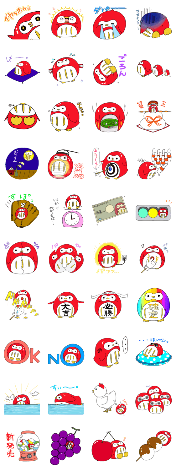 だるまペンギンのだまペン@しっぽ屋さん しっぽ コメントをどうぞ ペンギン?だるま?丸くて赤い不思議なキャラクターだまペンのスタンプです。 このスタンプどう思う?!↓クリックで投票♪好き (0)かわいい (0)かっこいい (0)おもしろい (0)使いやすそう (0)欲しい (0)萌え (0)ほっこりする (0)おしゃれ (0)ゆるい (0)こわい (0)ウザい (0)キモい (0)ムカつく (0)持ってる (0)癒される (0)セクシー (0)個性的 (0)私は買わない (0)誰かプレゼントして! (0) 購入・プレゼントする Facebookでシェア Twitterでシェア
