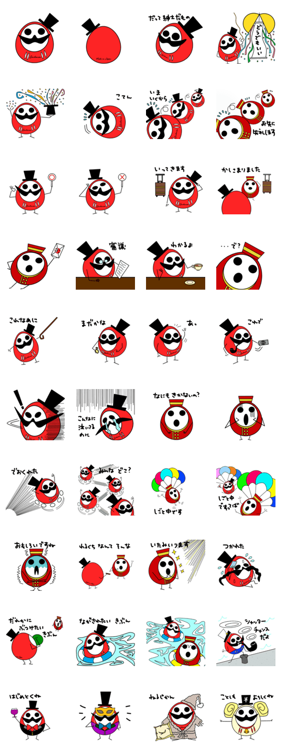 だるま紳士 株式会社オモシロ コメントをどうぞ ちょっぴり愉快なだるま紳士とお茶目なベルボーイだるまのスタンプ第1弾!だるま紳士達と一緒にLINEでだるまライフを楽しんじゃお!! このスタンプどう思う?!↓クリックで投票♪好き (0)かわいい (0)かっこいい (0)おもしろい (0)使いやすそう (0)欲しい (0)萌え (0)ほっこりする (0)おしゃれ (0)ゆるい (0)こわい (0)ウザい (0)キモい (0)ムカつく (0)持ってる (0)癒される (0)セクシー (0)個性的 (0)私は買わない (0)誰かプレゼントして! (0) 購入・プレゼントする Facebookでシェア Twitterでシェア