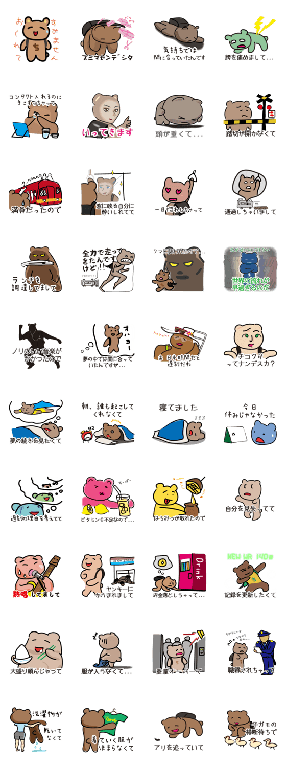 ちこくま(小学生) Minato.Abe コメントをどうぞ いつも一生懸命なんだけど、なーぜか遅刻しちゃう...くまさんです。遅刻の言い訳を代弁してもらいましょう。 このスタンプどう思う?!↓クリックで投票♪好き (0)かわいい (0)かっこいい (0)おもしろい (0)使いやすそう (0)欲しい (0)萌え (0)ほっこりする (0)おしゃれ (0)ゆるい (0)こわい (0)ウザい (0)キモい (0)ムカつく (0)持ってる (0)癒される (0)セクシー (0)個性的 (0)私は買わない (0)誰かプレゼントして! (0) 購入・プレゼントする Facebookでシェア Twitterでシェア