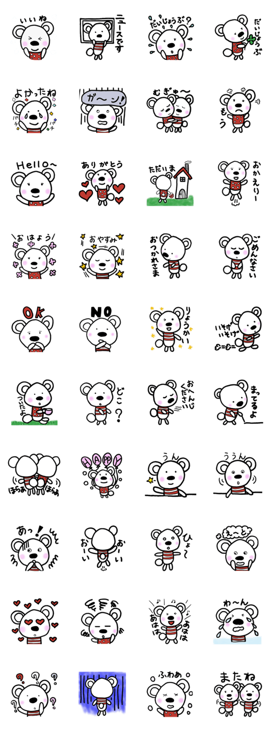 ちゅっちゅととっと はじめまして tamamo コメントをどうぞ 双子の兄妹「ちゅっちゅ」と「とっと」。妹の「ちゅっちゅ」はみずたま服。兄の「とっと」はしましま服。二人のスタンプで毎日がもっと楽しくな~れ! このスタンプどう思う?!↓クリックで投票♪好き (0)かわいい (0)かっこいい (0)おもしろい (0)使いやすそう (0)欲しい (0)萌え (0)ほっこりする (0)おしゃれ (0)ゆるい (0)こわい (0)ウザい (0)キモい (0)ムカつく (0)持ってる (0)癒される (0)セクシー (0)個性的 (0)私は買わない (0)誰かプレゼントして! (0) 購入・プレゼントする Facebookでシェア Twitterでシェア