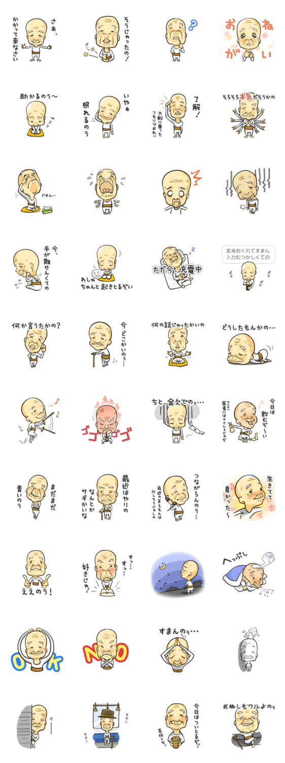 ちょっと、うちのじいちゃん連れてくるわ kimi コメントをどうぞ ほっこりマイペースなおじいちゃんが今の気持ちを代弁します。会話の中で和みの間をつくってみませんか このスタンプどう思う?!↓クリックで投票♪好き (0)かわいい (0)かっこいい (0)おもしろい (0)使いやすそう (0)欲しい (0)萌え (0)ほっこりする (0)おしゃれ (0)ゆるい (0)こわい (0)ウザい (0)キモい (0)ムカつく (0)持ってる (0)癒される (0)セクシー (0)個性的 (0)私は買わない (0)誰かプレゼントして! (0) 購入・プレゼントする Facebookでシェア Twitterでシェア