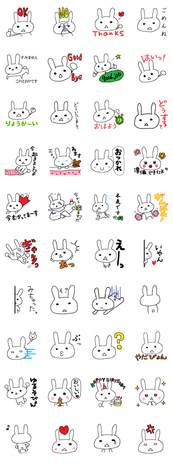 ちょっとシャイです。らびっちょん! non コメントをどうぞ ちょっとシャイなうさぎ、らびっちょんのスタンプです。シャイなので表情豊かではありませんが、喜怒哀楽を精一杯表現しています。三角のお口がトレードマーク。 このスタンプどう思う?!↓クリックで投票♪好き (0)かわいい (0)かっこいい (0)おもしろい (0)使いやすそう (0)欲しい (0)萌え (0)ほっこりする (0)おしゃれ (0)ゆるい (0)こわい (0)ウザい (0)キモい (0)ムカつく (0)持ってる (0)癒される (0)セクシー (0)個性的 (0)私は買わない (0)誰かプレゼントして! (0) 購入・プレゼントする Facebookでシェア Twitterでシェア