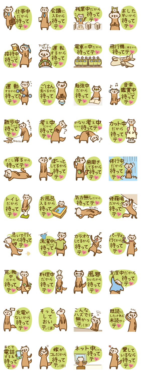 ちょっと待ってテン けいじゅ。 コメントをどうぞ 返信する時間がないのに、既読してしまった。そんな時には、このスタンプが役に立ちます。貴方の色々な状況を、貴方に代わって伝えてくれますよ。 このスタンプどう思う?!↓クリックで投票♪好き (0)かわいい (0)かっこいい (0)おもしろい (0)使いやすそう (0)欲しい (0)萌え (0)ほっこりする (0)おしゃれ (0)ゆるい (0)こわい (0)ウザい (0)キモい (0)ムカつく (0)持ってる (0)癒される (0)セクシー (0)個性的 (0)私は買わない (0)誰かプレゼントして! (0) 購入・プレゼントする Facebookでシェア Twitterでシェア
