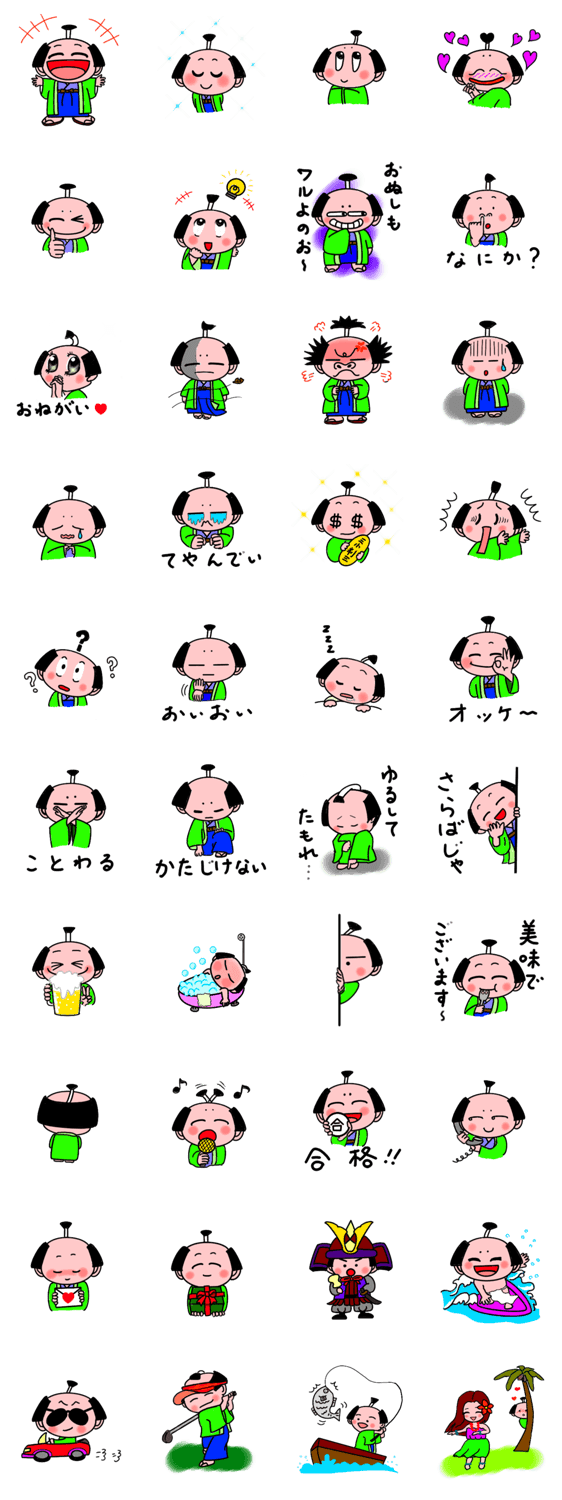 ちょんまげくん AZUKI コメントをどうぞ 江戸時代から現代へタイムスリップしてきたちょんまげくん。ちょんまげをこよなく愛し、楽しくたくましく21世紀を生きている。 このスタンプどう思う?!↓クリックで投票♪好き (0)かわいい (0)かっこいい (0)おもしろい (0)使いやすそう (0)欲しい (0)萌え (0)ほっこりする (0)おしゃれ (0)ゆるい (0)こわい (0)ウザい (0)キモい (0)ムカつく (0)持ってる (0)癒される (0)セクシー (0)個性的 (0)私は買わない (0)誰かプレゼントして! (0) 購入・プレゼントする Facebookでシェア Twitterでシェア