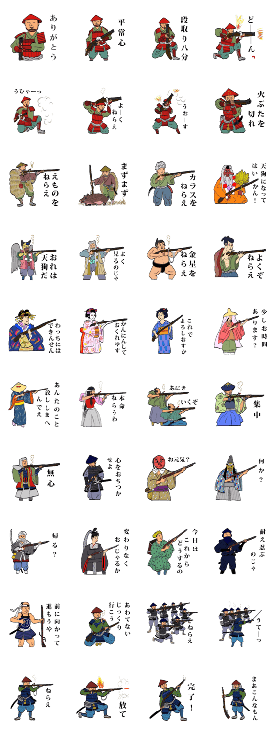 てっぽう クマ太郎 コメントをどうぞ 500年前に日本に伝来した「てっぽう」をLINESTAMPにしました。さまざまな階層の人々に鉄砲は広まりました。 このスタンプどう思う?!↓クリックで投票♪好き (0)かわいい (0)かっこいい (0)おもしろい (0)使いやすそう (0)欲しい (0)萌え (0)ほっこりする (0)おしゃれ (0)ゆるい (0)こわい (0)ウザい (0)キモい (0)ムカつく (0)持ってる (0)癒される (0)セクシー (0)個性的 (0)私は買わない (0)誰かプレゼントして! (0) 購入・プレゼントする Facebookでシェア Twitterでシェア