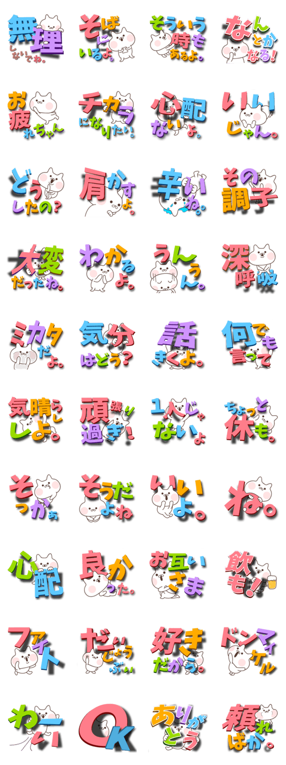 でか文字スタンプ5 気遣いセット mtorak コメントをどうぞ 「でか文字」スタンプ第5弾!あなたの大切な人を気遣う優しい気持ちのスタンプ。元気づけたり、励ましたり、寄り添ったり、応援したりできる。 このスタンプどう思う?!↓クリックで投票♪好き (0)かわいい (0)かっこいい (0)おもしろい (0)使いやすそう (0)欲しい (0)萌え (0)ほっこりする (0)おしゃれ (0)ゆるい (0)こわい (0)ウザい (0)キモい (0)ムカつく (0)持ってる (0)癒される (0)セクシー (0)個性的 (0)私は買わない (0)誰かプレゼントして! (0) 購入・プレゼントする Facebookでシェア Twitterでシェア