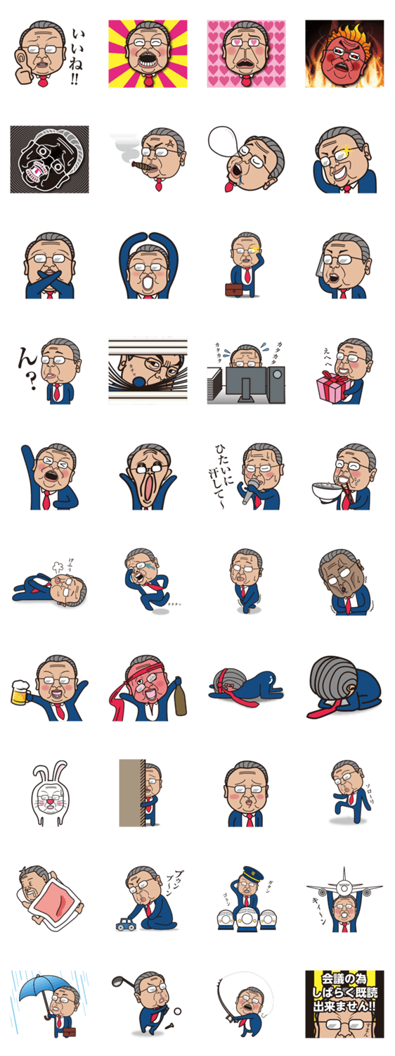 とある社長の日常。 はまじ コメントをどうぞ とある社長の日常生活をスタンプにしました。日々の忙しい業務の中、いろんな表情をする「社長」をお楽しみ下さい!! このスタンプどう思う?!↓クリックで投票♪好き (0)かわいい (0)かっこいい (0)おもしろい (0)使いやすそう (0)欲しい (0)萌え (0)ほっこりする (0)おしゃれ (0)ゆるい (0)こわい (0)ウザい (0)キモい (0)ムカつく (0)持ってる (0)癒される (0)セクシー (0)個性的 (0)私は買わない (0)誰かプレゼントして! (0) 購入・プレゼントする Facebookでシェア Twitterでシェア