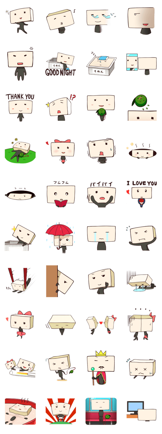 とうふくん ふたつゆい/らめる コメントをどうぞ 冷蔵庫から飛び出したとうふくん。ペットのすだちちゃんとガールフレンドのとうふちゃんを連れ、LINEに遊びにやってきました。とうふくんたちと愉快な会話を楽しもう! このスタンプどう思う?!↓クリックで投票♪好き (0)かわいい (0)かっこいい (0)おもしろい (0)使いやすそう (0)欲しい (0)萌え (0)ほっこりする (0)おしゃれ (0)ゆるい (0)こわい (0)ウザい (0)キモい (0)ムカつく (0)持ってる (0)癒される (0)セクシー (0)個性的 (0)私は買わない (0)誰かプレゼントして! (0) 購入・プレゼントする Facebookでシェア Twitterでシェア