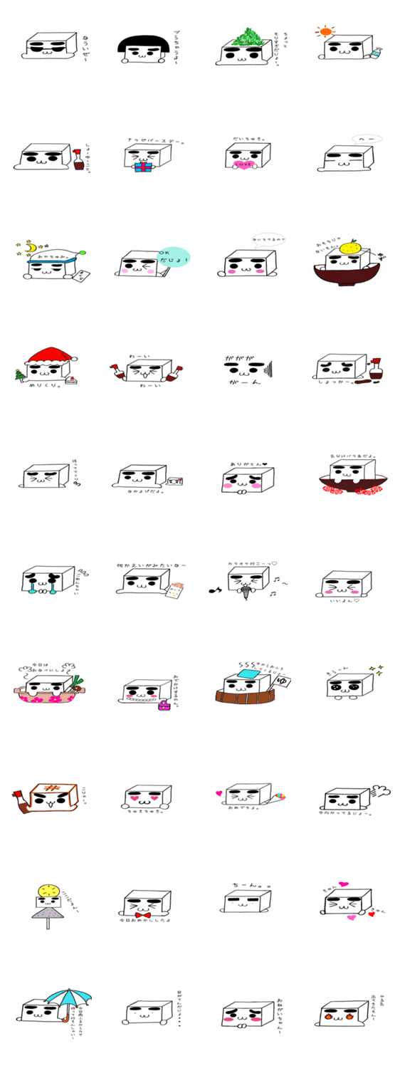 とうふちゃんの日常 sanapichan コメントをどうぞ とうふちゃんの何気ないつぶやきをスタンプにしました このスタンプどう思う?!↓クリックで投票♪好き (0)かわいい (0)かっこいい (0)おもしろい (0)使いやすそう (0)欲しい (0)萌え (0)ほっこりする (0)おしゃれ (0)ゆるい (0)こわい (0)ウザい (0)キモい (0)ムカつく (0)持ってる (0)癒される (0)セクシー (0)個性的 (0)私は買わない (0)誰かプレゼントして! (0) 購入・プレゼントする Facebookでシェア Twitterでシェア