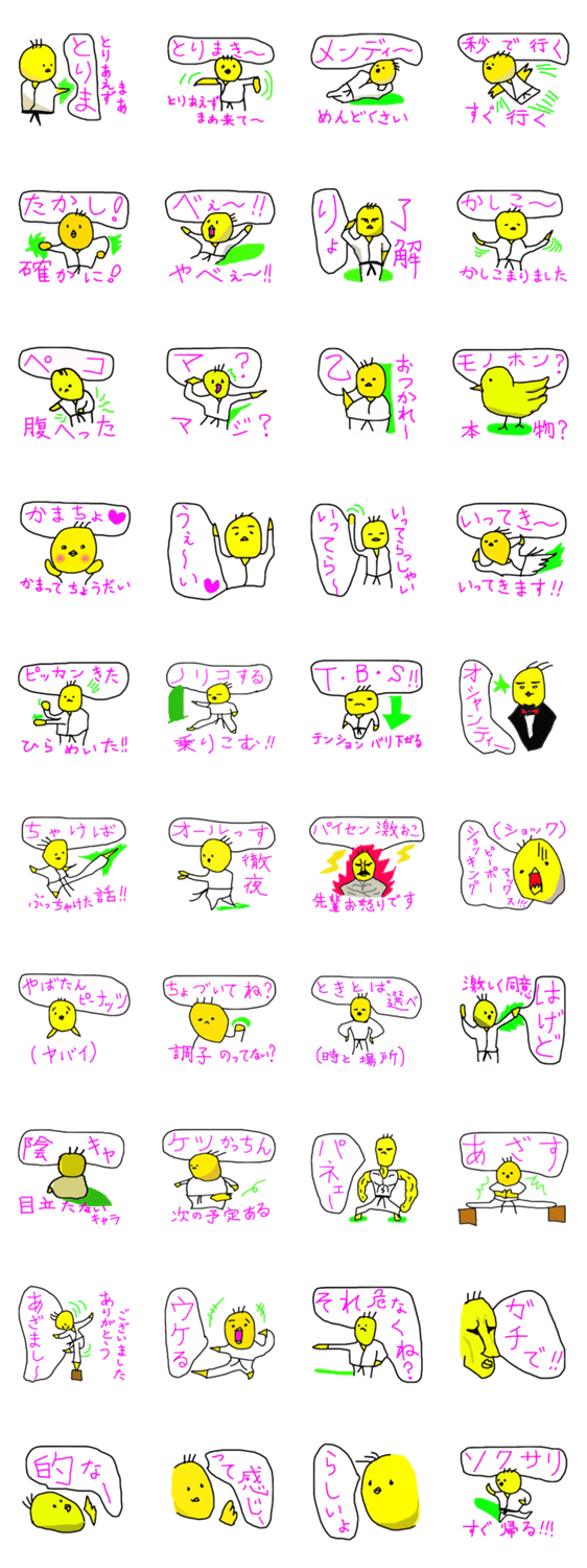 とりま、武道家 seven man コメントをどうぞ ギャル語を使った脱力系スタンプ。武道・格闘技、空手、柔道、合気道などで、柔よく剛を制したい方ぜひ!! とりま。ヒヨコです。 このスタンプどう思う?!↓クリックで投票♪好き (0)かわいい (0)かっこいい (0)おもしろい (0)使いやすそう (0)欲しい (0)萌え (0)ほっこりする (0)おしゃれ (0)ゆるい (0)こわい (0)ウザい (0)キモい (0)ムカつく (0)持ってる (0)癒される (0)セクシー (0)個性的 (0)私は買わない (0)誰かプレゼントして! (0) 購入・プレゼントする Facebookでシェア Twitterでシェア