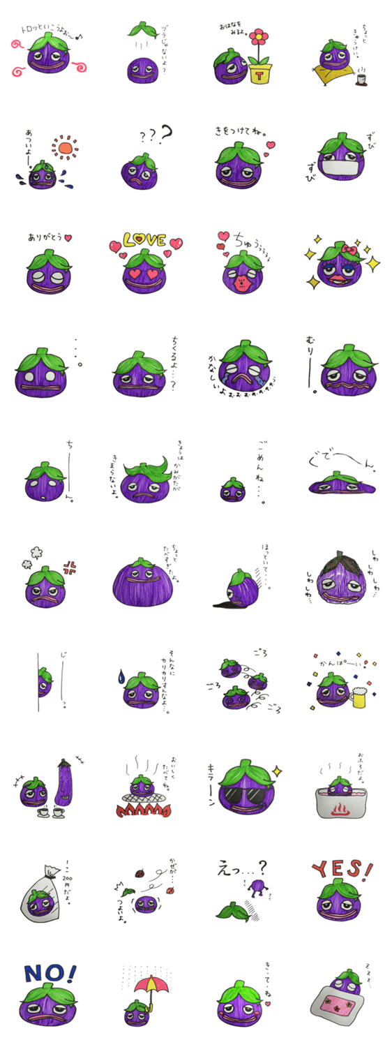 とろりん。 阿波ツクヨミファーム コメントをどうぞ 僕はロッサビアンコ(米ナス)のとろりん。せかせか生きずにとろっといこうよ。 このスタンプどう思う?!↓クリックで投票♪好き (0)かわいい (0)かっこいい (0)おもしろい (0)使いやすそう (0)欲しい (0)萌え (0)ほっこりする (0)おしゃれ (0)ゆるい (0)こわい (0)ウザい (0)キモい (0)ムカつく (0)持ってる (0)癒される (0)セクシー (0)個性的 (0)私は買わない (0)誰かプレゼントして! (0) 購入・プレゼントする Facebookでシェア Twitterでシェア