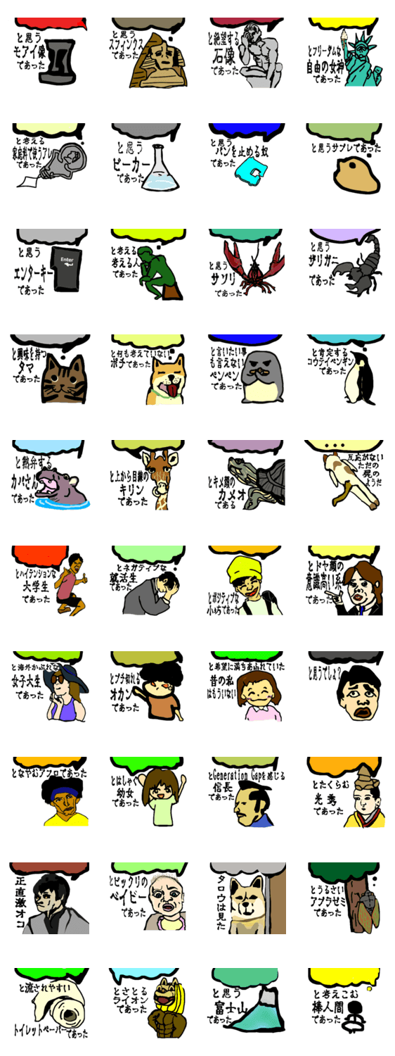 と思う~スタンプ kazuzu コメントをどうぞ モアイ像や動物また文房具までもがあなたの気持ちを代弁してくれる! このスタンプどう思う?!↓クリックで投票♪好き (0)かわいい (0)かっこいい (0)おもしろい (0)使いやすそう (0)欲しい (0)萌え (0)ほっこりする (0)おしゃれ (0)ゆるい (0)こわい (0)ウザい (0)キモい (0)ムカつく (0)持ってる (0)癒される (0)セクシー (0)個性的 (0)私は買わない (0)誰かプレゼントして! (0) 購入・プレゼントする Facebookでシェア Twitterでシェア