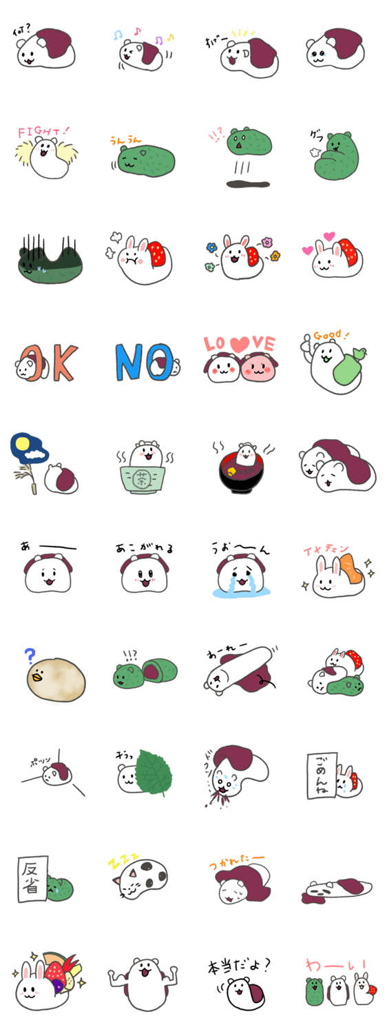 どうぶつ大福 FM亭 コメントをどうぞ おいしい大福が動物たちになりました。くま、うさぎ、ねこ!?もちもちした動物たちがおいしく気持ちを伝えます。 このスタンプどう思う?!↓クリックで投票♪好き (0)かわいい (0)かっこいい (0)おもしろい (0)使いやすそう (0)欲しい (0)萌え (0)ほっこりする (0)おしゃれ (0)ゆるい (0)こわい (0)ウザい (0)キモい (0)ムカつく (0)持ってる (0)癒される (0)セクシー (0)個性的 (0)私は買わない (0)誰かプレゼントして! (0) 購入・プレゼントする Facebookでシェア Twitterでシェア