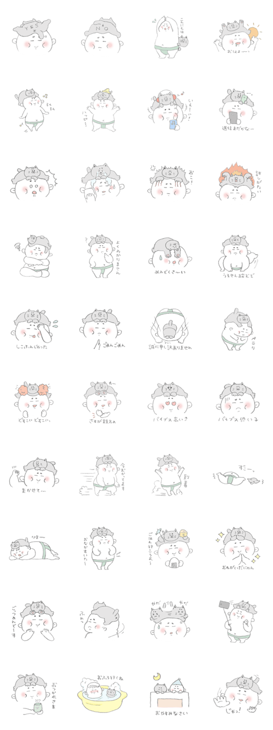 どすこい!まげニャン MageNyan コメントをどうぞ 相撲部所属の高校生。坊主頭でマゲが結えないので、飼い猫を頭に載せてごまかしている。 このスタンプどう思う?!↓クリックで投票♪好き (0)かわいい (0)かっこいい (0)おもしろい (0)使いやすそう (0)欲しい (0)萌え (0)ほっこりする (0)おしゃれ (0)ゆるい (0)こわい (0)ウザい (0)キモい (0)ムカつく (0)持ってる (0)癒される (0)セクシー (0)個性的 (0)私は買わない (0)誰かプレゼントして! (0) 購入・プレゼントする Facebookでシェア Twitterでシェア