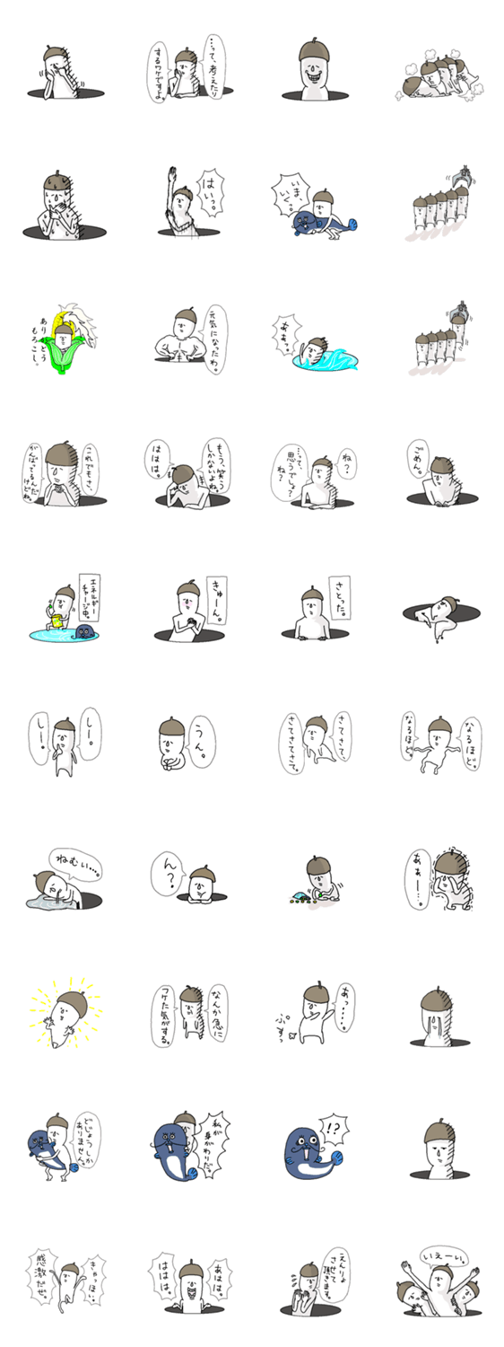 どんぐりっぽい奴。 かよじゃが コメントをどうぞ どんぐりっぽい奴です。その辺の穴やお池から出てきます。お池のどじょうとグミが大好きです。 このスタンプどう思う?!↓クリックで投票♪好き (0)かわいい (0)かっこいい (0)おもしろい (0)使いやすそう (0)欲しい (0)萌え (0)ほっこりする (0)おしゃれ (0)ゆるい (0)こわい (0)ウザい (0)キモい (0)ムカつく (0)持ってる (0)癒される (0)セクシー (0)個性的 (0)私は買わない (0)誰かプレゼントして! (0) 購入・プレゼントする Facebookでシェア Twitterでシェア