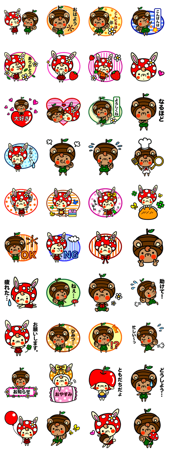どんぐりの森 AI コメントをどうぞ どんぐりの森に住んでいる、ウサギとリスです!この子達は、毎日楽しく過ごしています。 このスタンプどう思う?!↓クリックで投票♪好き (0)かわいい (0)かっこいい (0)おもしろい (0)使いやすそう (0)欲しい (0)萌え (0)ほっこりする (0)おしゃれ (0)ゆるい (0)こわい (0)ウザい (0)キモい (0)ムカつく (0)持ってる (0)癒される (0)セクシー (0)個性的 (0)私は買わない (0)誰かプレゼントして! (0) 購入・プレゼントする Facebookでシェア Twitterでシェア