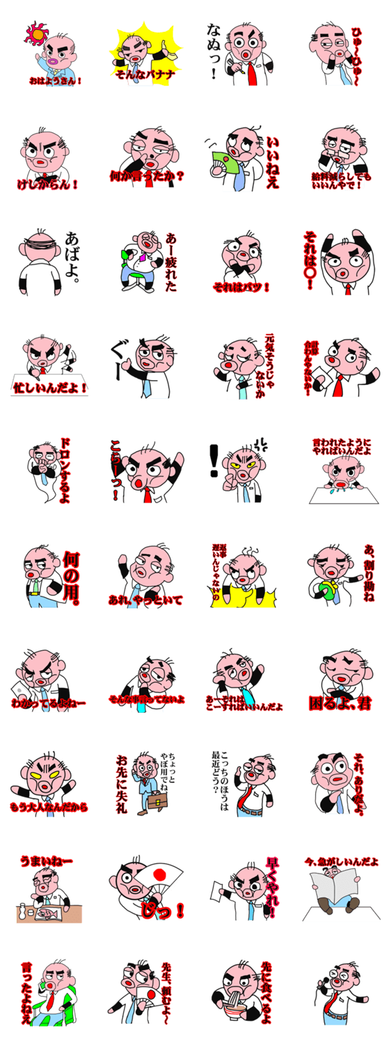 なうでヤングな昭和レトロなタコ親父。 BONBON コメントをどうぞ パワハラなタコ上司。昭和な死語を使うユニークなハゲ頭のたこ会社員。嫌な課長、部長、社長など会社の中にいませんか?そんなブラックな上司スタンプを使いこなそう。 このスタンプどう思う?!↓クリックで投票♪好き (0)かわいい (0)かっこいい (0)おもしろい (0)使いやすそう (0)欲しい (0)萌え (0)ほっこりする (0)おしゃれ (0)ゆるい (0)こわい (0)ウザい (0)キモい (0)ムカつく (0)持ってる (0)癒される (0)セクシー (0)個性的 (0)私は買わない (0)誰かプレゼントして! (0) 購入・プレゼントする Facebookでシェア Twitterでシェア