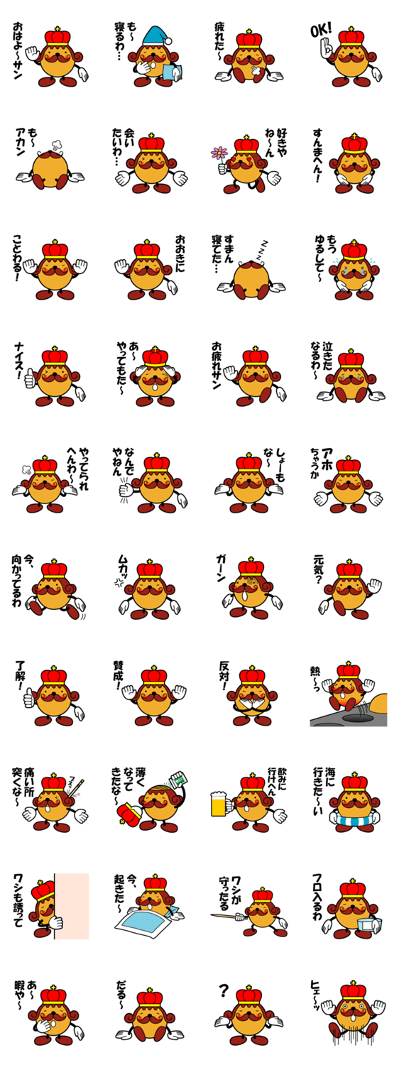 なにわのタコヤキング soramame コメントをどうぞ 関西のソウルフードの王様、たこ焼きをキャラクターにしました。 このスタンプどう思う?!↓クリックで投票♪好き (0)かわいい (0)かっこいい (0)おもしろい (0)使いやすそう (0)欲しい (0)萌え (0)ほっこりする (0)おしゃれ (0)ゆるい (0)こわい (0)ウザい (0)キモい (0)ムカつく (0)持ってる (0)癒される (0)セクシー (0)個性的 (0)私は買わない (0)誰かプレゼントして! (0) 購入・プレゼントする Facebookでシェア Twitterでシェア