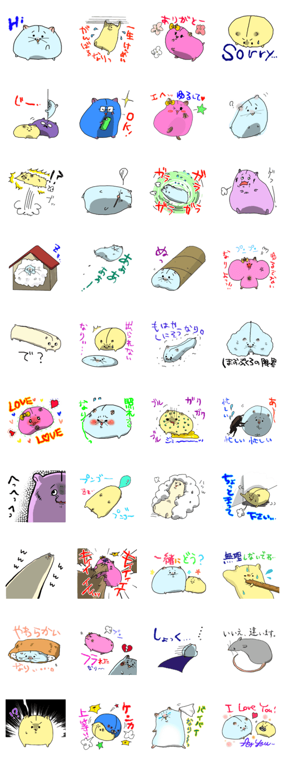 なりのすけなり~ ちんつぶ コメントをどうぞ なにをやってもダメダメな、ちょっとのろまのハムスターなりのすけ。優秀な弟なりじろう(黄色)や仲間たちもいます。 このスタンプどう思う?!↓クリックで投票♪好き (0)かわいい (0)かっこいい (0)おもしろい (0)使いやすそう (0)欲しい (0)萌え (0)ほっこりする (0)おしゃれ (0)ゆるい (0)こわい (0)ウザい (0)キモい (0)ムカつく (0)持ってる (0)癒される (0)セクシー (0)個性的 (0)私は買わない (0)誰かプレゼントして! (0) 購入・プレゼントする Facebookでシェア Twitterでシェア