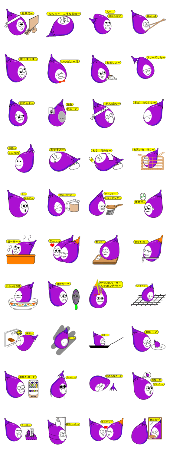 なんとなくなすび 三角おにぎり コメントをどうぞ 焼いても、漬けても、汁の具としても 美味しいなすび。食べるときに思い出してください。 このスタンプどう思う?!↓クリックで投票♪好き (0)かわいい (0)かっこいい (0)おもしろい (0)使いやすそう (0)欲しい (0)萌え (0)ほっこりする (0)おしゃれ (0)ゆるい (0)こわい (0)ウザい (0)キモい (0)ムカつく (0)持ってる (0)癒される (0)セクシー (0)個性的 (0)私は買わない (0)誰かプレゼントして! (0) 購入・プレゼントする Facebookでシェア Twitterでシェア