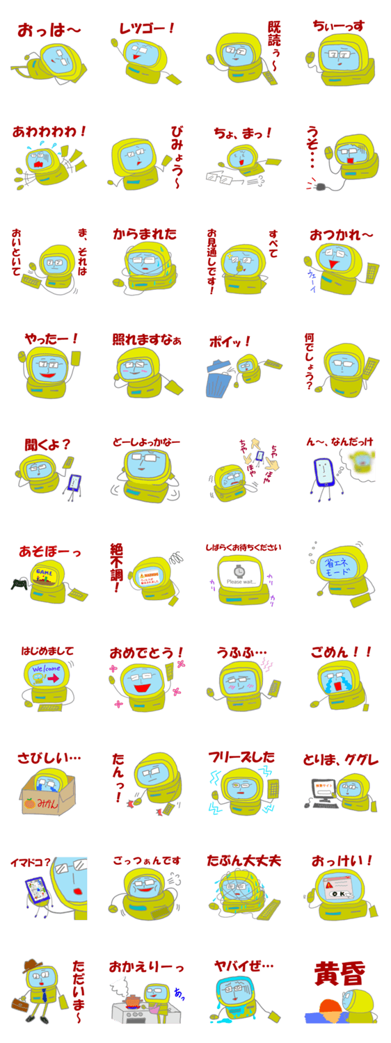 にくいぜ!パソコンさん キモチ鍋 コメントをどうぞ 旧式デスクトップ型で、インターネットもできないパソコンさんが、ITネタ(?)をからめて日常会話を盛り上げます。 このスタンプどう思う?!↓クリックで投票♪好き (0)かわいい (0)かっこいい (0)おもしろい (0)使いやすそう (0)欲しい (0)萌え (0)ほっこりする (0)おしゃれ (0)ゆるい (0)こわい (0)ウザい (0)キモい (0)ムカつく (0)持ってる (0)癒される (0)セクシー (0)個性的 (0)私は買わない (0)誰かプレゼントして! (0) 購入・プレゼントする Facebookでシェア Twitterでシェア
