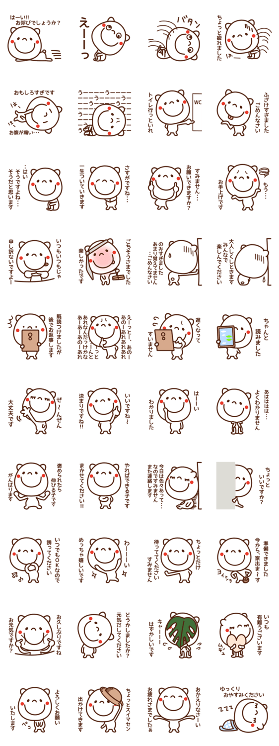 にこにこくまさん 敬語編 あぢゅ コメントをどうぞ にっこり笑顔のかわいいしろくまさんのスタンプ。先輩や仕事場の上司にママ友たち、お友達にも使えるゆるめの敬語です。日常会話、おもしろ系、長文スタンプで便利に このスタンプどう思う?!↓クリックで投票♪好き (0)かわいい (0)かっこいい (0)おもしろい (0)使いやすそう (0)欲しい (0)萌え (0)ほっこりする (0)おしゃれ (0)ゆるい (0)こわい (0)ウザい (0)キモい (0)ムカつく (0)持ってる (0)癒される (0)セクシー (0)個性的 (0)私は買わない (0)誰かプレゼントして! (0) 購入・プレゼントする Facebookでシェア Twitterでシェア