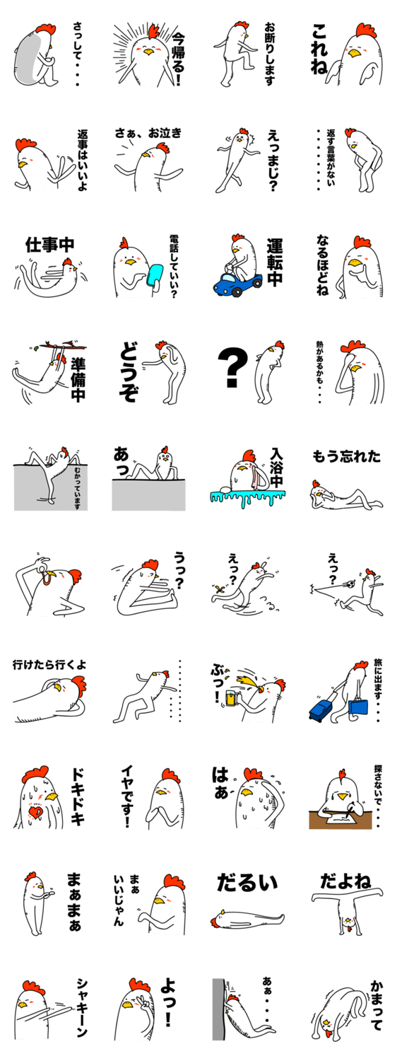 にわさん 4 wangi コメントをどうぞ 雄鶏のにわさん。今日も元気です!さらに「にわさん」の魅力満載。 このスタンプどう思う?!↓クリックで投票♪好き (0)かわいい (0)かっこいい (0)おもしろい (0)使いやすそう (0)欲しい (0)萌え (0)ほっこりする (0)おしゃれ (0)ゆるい (0)こわい (0)ウザい (0)キモい (0)ムカつく (0)持ってる (0)癒される (0)セクシー (0)個性的 (0)私は買わない (0)誰かプレゼントして! (0) 購入・プレゼントする Facebookでシェア Twitterでシェア