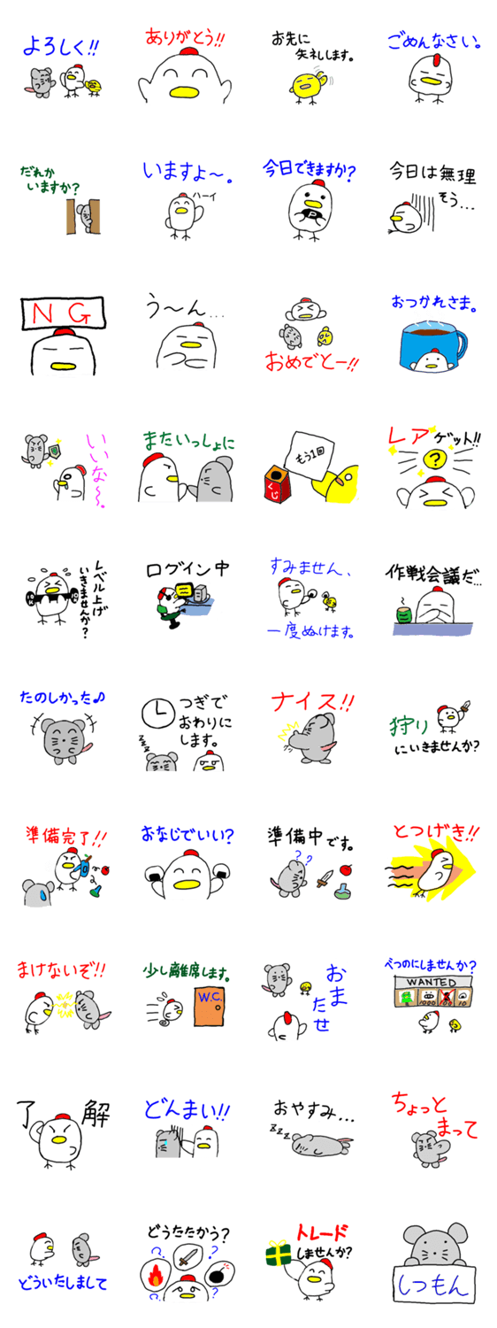 にわとりとねずみ オンラインゲーム編 ブラックシリカゲル コメントをどうぞ にわとりとねずみのスタンプです。オンラインゲームをプレイする際に使えそうなものを、作りました。 このスタンプどう思う?!↓クリックで投票♪好き (0)かわいい (0)かっこいい (0)おもしろい (0)使いやすそう (0)欲しい (0)萌え (0)ほっこりする (0)おしゃれ (0)ゆるい (0)こわい (0)ウザい (0)キモい (0)ムカつく (0)持ってる (0)癒される (0)セクシー (0)個性的 (0)私は買わない (0)誰かプレゼントして! (0) 購入・プレゼントする Facebookでシェア Twitterでシェア