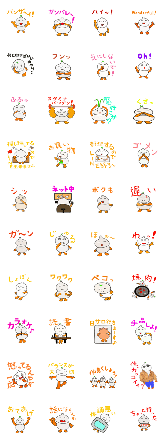 にんにクン hiraei コメントをどうぞ はーい、こんにちは!僕はにんにくの「にんにクン」です。いつも元気でパワフルで自分で言うのもなんですが、かわいいです。みんなに元気を届ける為に頑張りま~す! このスタンプどう思う?!↓クリックで投票♪好き (0)かわいい (0)かっこいい (0)おもしろい (0)使いやすそう (0)欲しい (0)萌え (0)ほっこりする (0)おしゃれ (0)ゆるい (0)こわい (0)ウザい (0)キモい (0)ムカつく (0)持ってる (0)癒される (0)セクシー (0)個性的 (0)私は買わない (0)誰かプレゼントして! (0) 購入・プレゼントする Facebookでシェア Twitterでシェア