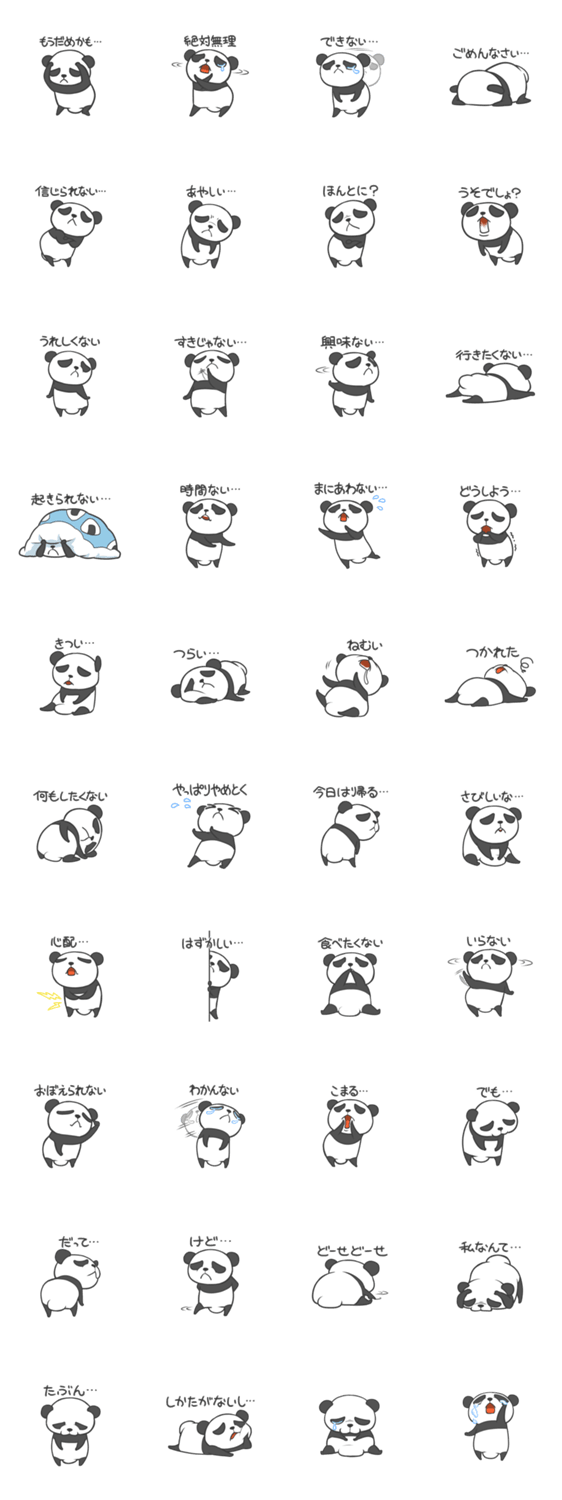 ねがぱん 鍵条漆 コメントをどうぞ いつもとっても心配性、疑り深くて後ろ向きなネガティブパンダ。心配だよね?しょうがないよね・・・ このスタンプどう思う?!↓クリックで投票♪好き (0)かわいい (0)かっこいい (0)おもしろい (0)使いやすそう (0)欲しい (0)萌え (0)ほっこりする (0)おしゃれ (0)ゆるい (0)こわい (0)ウザい (0)キモい (0)ムカつく (0)持ってる (0)癒される (0)セクシー (0)個性的 (0)私は買わない (0)誰かプレゼントして! (0) 購入・プレゼントする Facebookでシェア Twitterでシェア
