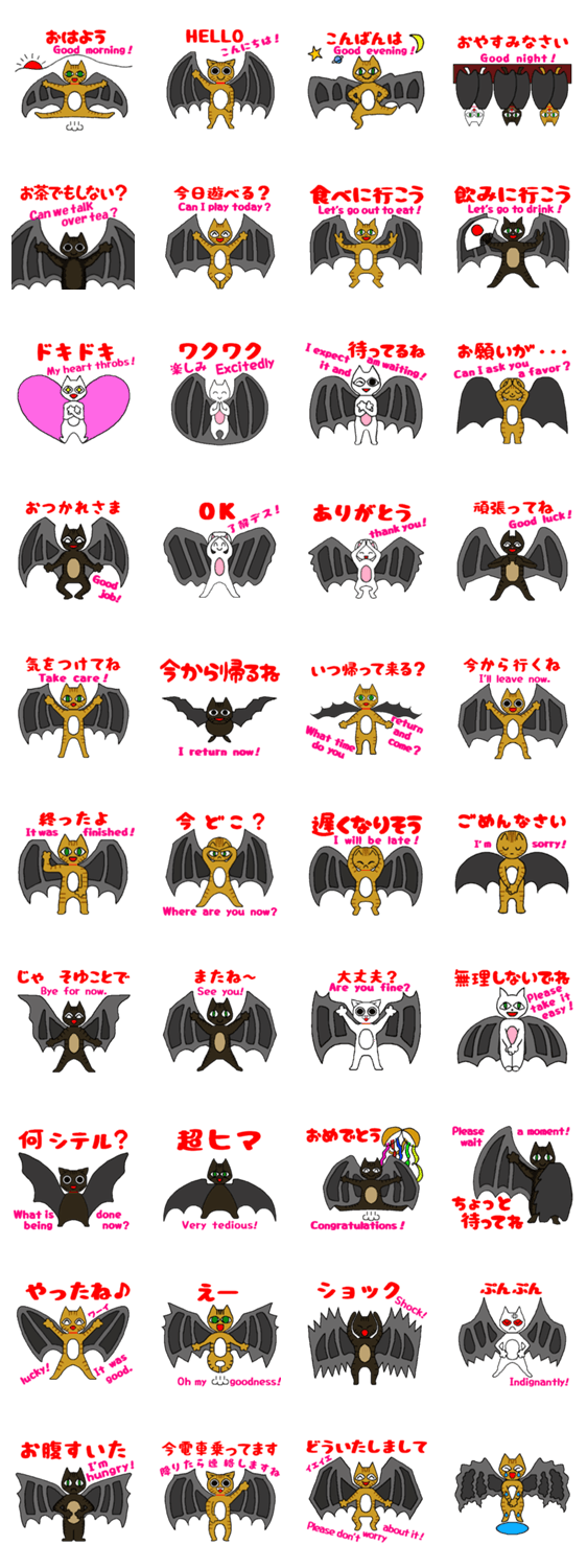 ねこうもり 銀河 コメントをどうぞ 気づかいの出来るこうもりのような猫さん。ゆるかわいい動物に癒されるスタンプです。日常使える英語と日本語の二ヶ国語表記集。 このスタンプどう思う?!↓クリックで投票♪好き (0)かわいい (0)かっこいい (0)おもしろい (0)使いやすそう (0)欲しい (0)萌え (0)ほっこりする (0)おしゃれ (0)ゆるい (0)こわい (0)ウザい (0)キモい (0)ムカつく (0)持ってる (0)癒される (0)セクシー (0)個性的 (0)私は買わない (0)誰かプレゼントして! (0) 購入・プレゼントする Facebookでシェア Twitterでシェア
