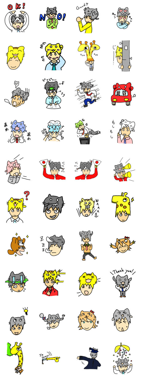 ねこかぶりくん とも コメントをどうぞ 頭に猫を被ってるけど、ぜんぜん猫被りしてない青年「ねこかぶりくん」のスタンプが登場! たまにキリンやタヌキを被っているのはご愛敬。PS.ねこかぶりちゃんもよろしく このスタンプどう思う?!↓クリックで投票♪好き (0)かわいい (0)かっこいい (0)おもしろい (0)使いやすそう (0)欲しい (0)萌え (0)ほっこりする (0)おしゃれ (0)ゆるい (0)こわい (0)ウザい (0)キモい (0)ムカつく (0)持ってる (0)癒される (0)セクシー (0)個性的 (0)私は買わない (0)誰かプレゼントして! (0) 購入・プレゼントする Facebookでシェア Twitterでシェア