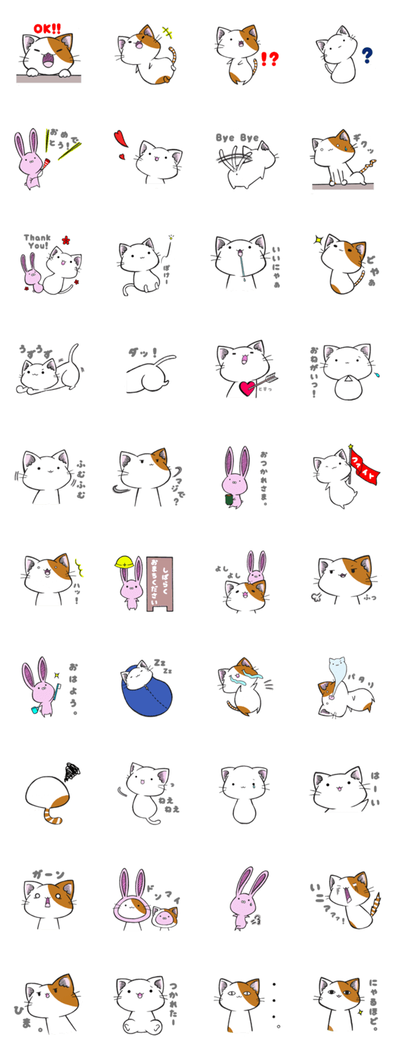 ねこさんとうささん sial コメントをどうぞ ゆるい白ねこさん、みけねこさん、うささんのスタンプです。 このスタンプどう思う?!↓クリックで投票♪好き (0)かわいい (0)かっこいい (0)おもしろい (0)使いやすそう (0)欲しい (0)萌え (0)ほっこりする (0)おしゃれ (0)ゆるい (0)こわい (0)ウザい (0)キモい (0)ムカつく (0)持ってる (0)癒される (0)セクシー (0)個性的 (0)私は買わない (0)誰かプレゼントして! (0) 購入・プレゼントする Facebookでシェア Twitterでシェア