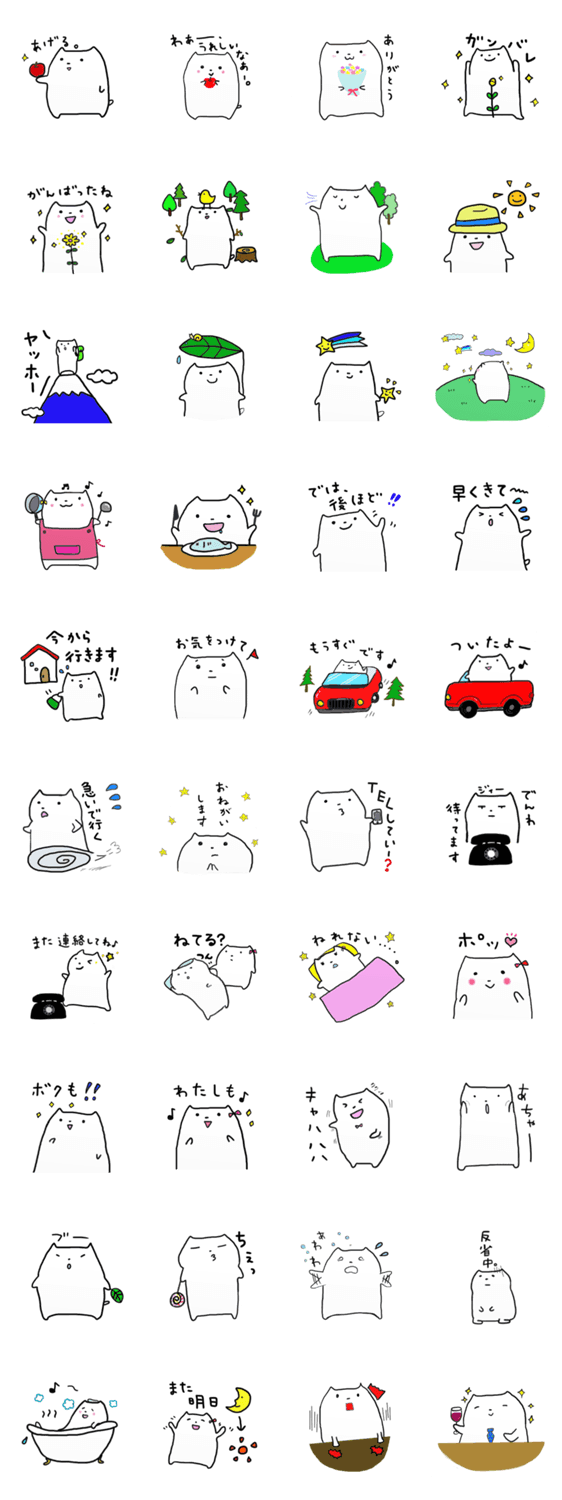 ねこたとねここの毎日。2 konpeitou コメントをどうぞ ゆるく、可愛い、ねこたとねここの日常スタンプ。第二弾です。リボンをつけているのがねここ。しっぽがちょっと出ているのが娘。 このスタンプどう思う?!↓クリックで投票♪好き (0)かわいい (0)かっこいい (0)おもしろい (0)使いやすそう (0)欲しい (0)萌え (0)ほっこりする (0)おしゃれ (0)ゆるい (0)こわい (0)ウザい (0)キモい (0)ムカつく (0)持ってる (0)癒される (0)セクシー (0)個性的 (0)私は買わない (0)誰かプレゼントして! (0) 購入・プレゼントする Facebookでシェア Twitterでシェア